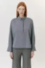Blusa Malha Polo Manga Comprida Cinza Andrea Marques